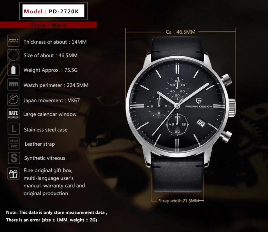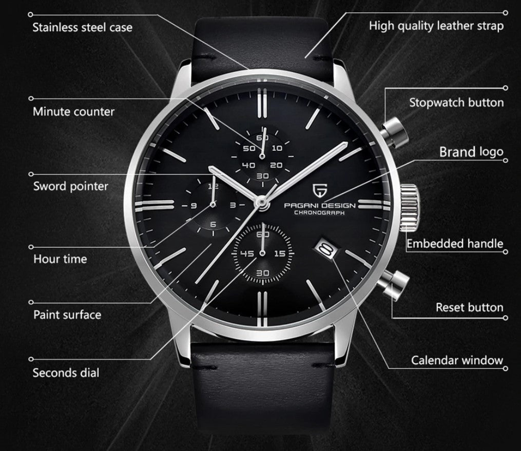 Reloj Hombre PAGANI DARK KNIGHT Cuarzo Negro Maquinaria SEIKO