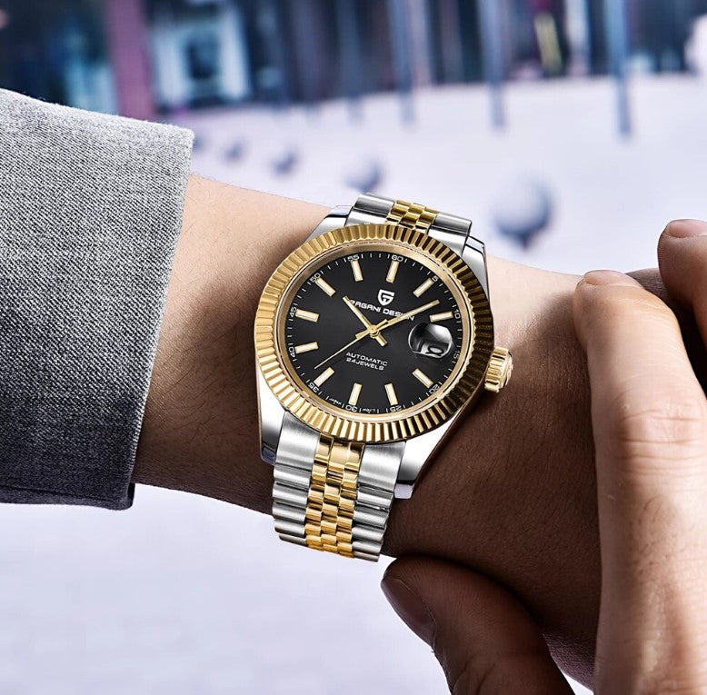 Reloj PAGANI DATEJUST Clásico Automatico Dorado BLACK Cristal de Zafiro