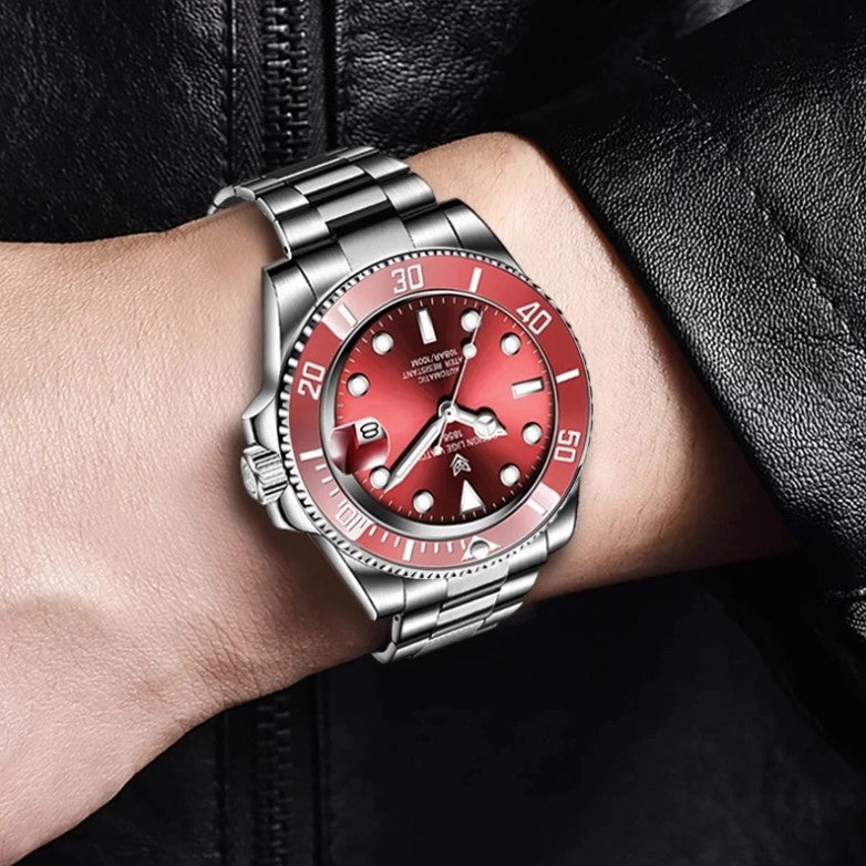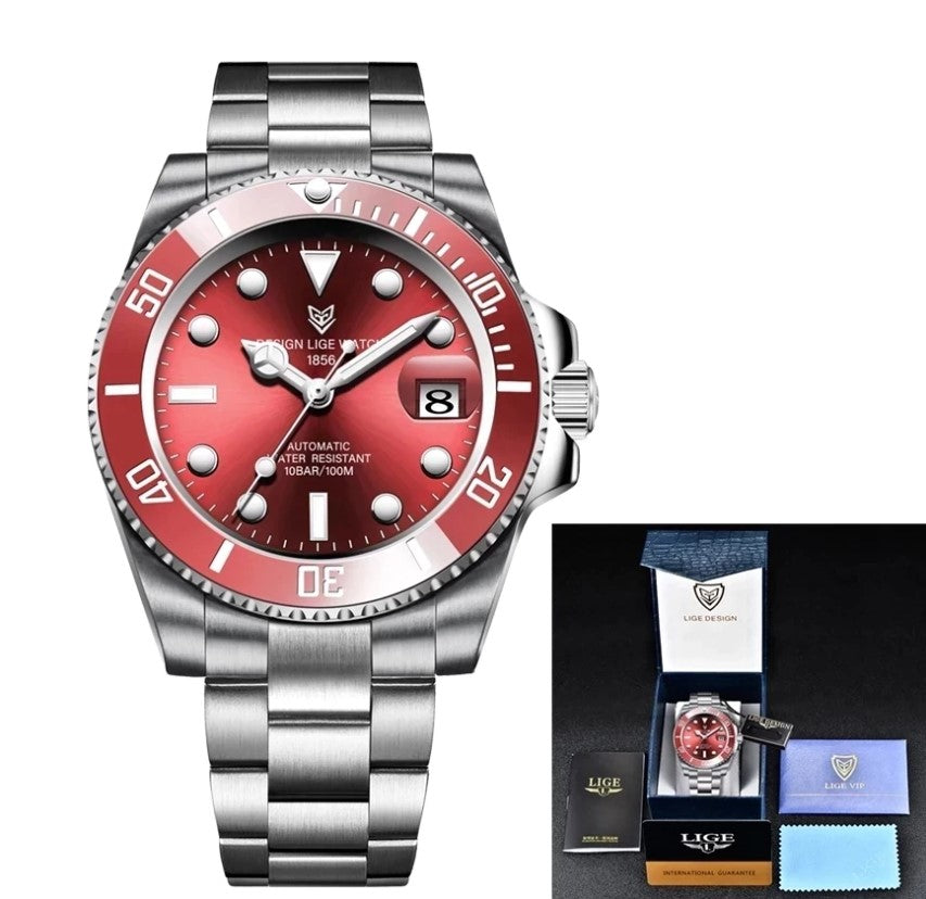 Reloj Hombre LIGE BERMELLÓN Automático Cristal de Zafiro