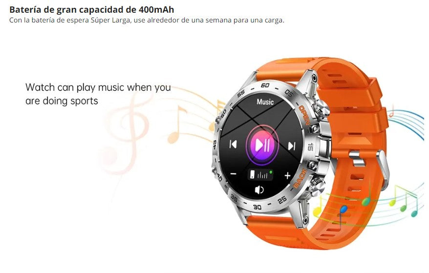 - -Material Correa: MODELO TRAE 2 CORREAS. METALICA PLATEADA y SILICONA NARANJA
