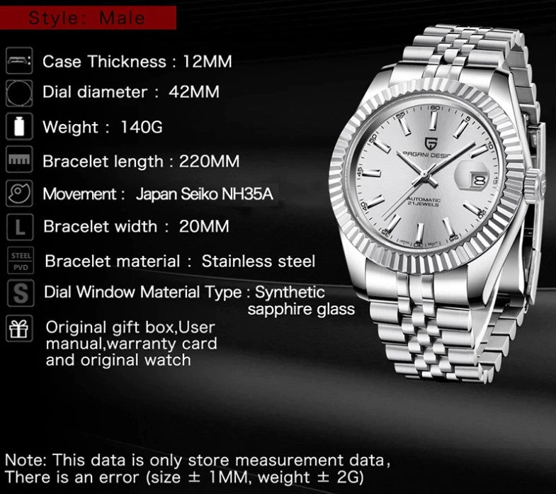 Reloj PAGANI DATEJUST Clásico Automatico Cristal de Zafiro