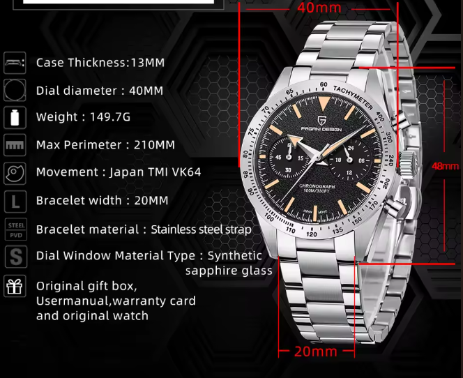 Reloj Hombre PAGANI "SPEEDMASTER 57" Cristal de Zafiro