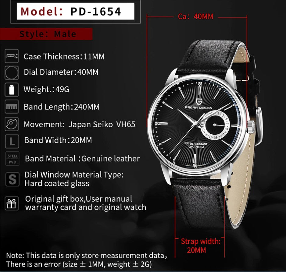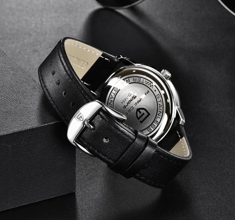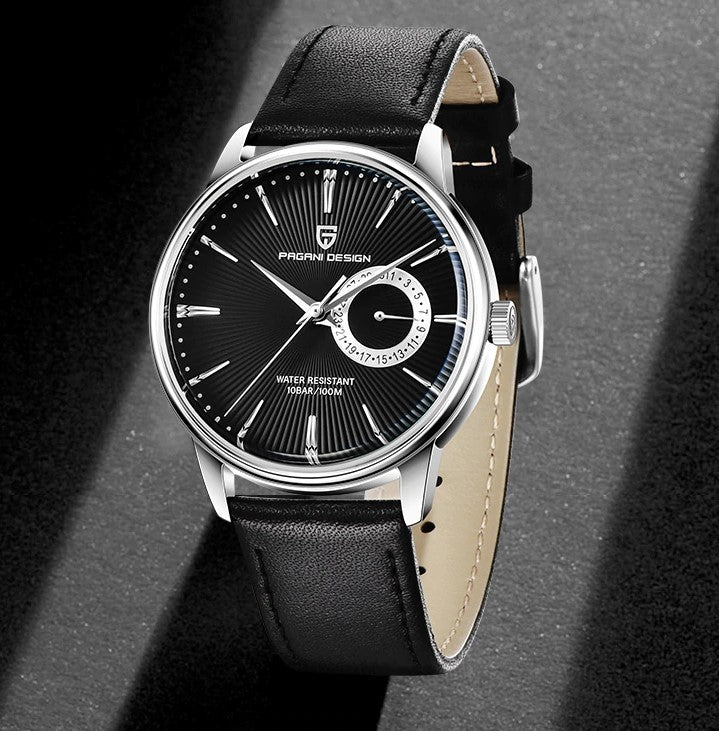 Reloj Hombre PAGANI ESTRATO Clásico Cuarzo Maquinaria Seiko Cuero Negro Genuino Cristal de Zafiro