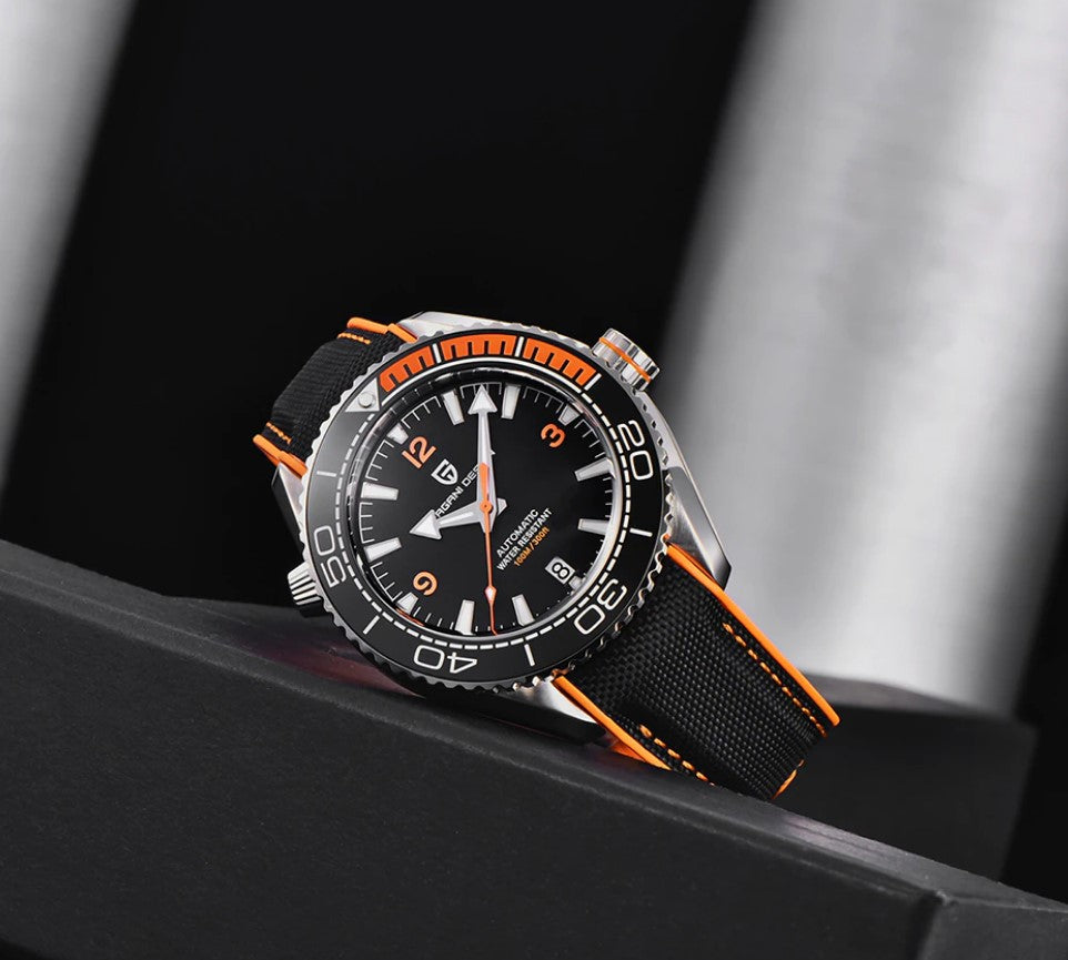 Reloj Hombre PAGANI SEAMASTER SPORT BLACK/ORANGE Maquinaria Automática Acero Quirúrgico Cristal de Zafiro