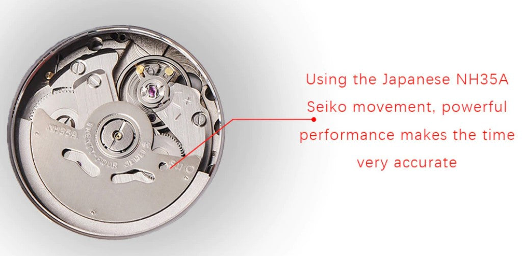 - Maquinaria: Automática Seiko NH35 de 24Rubies