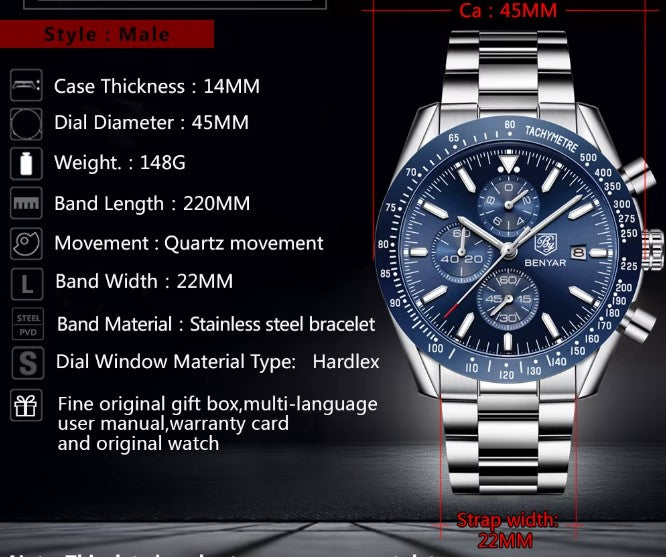Reloj Hombre BENYAR "BIETO SILVER" Clásico-Sport Cuarzo