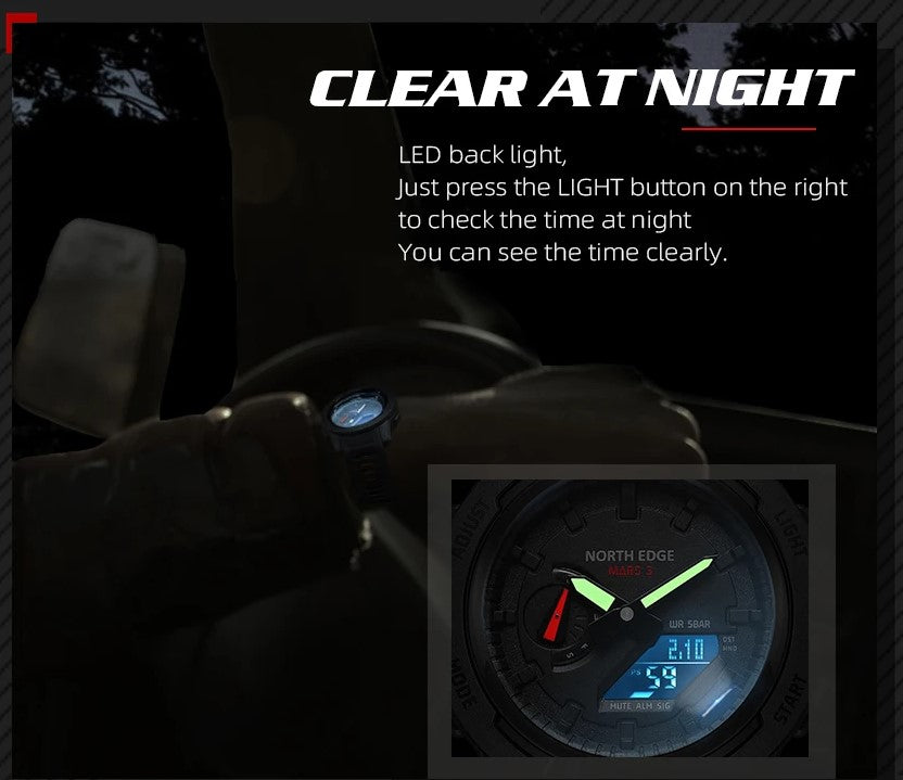 Reloj Hombre "NORTH EDGE MARS 3" Sport Outdoor Militar Digital