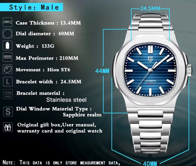 Reloj Hombre "PAGANI NAUTILUS BLUE" Maquinaria Automática Seiko Acero Quirúrgico